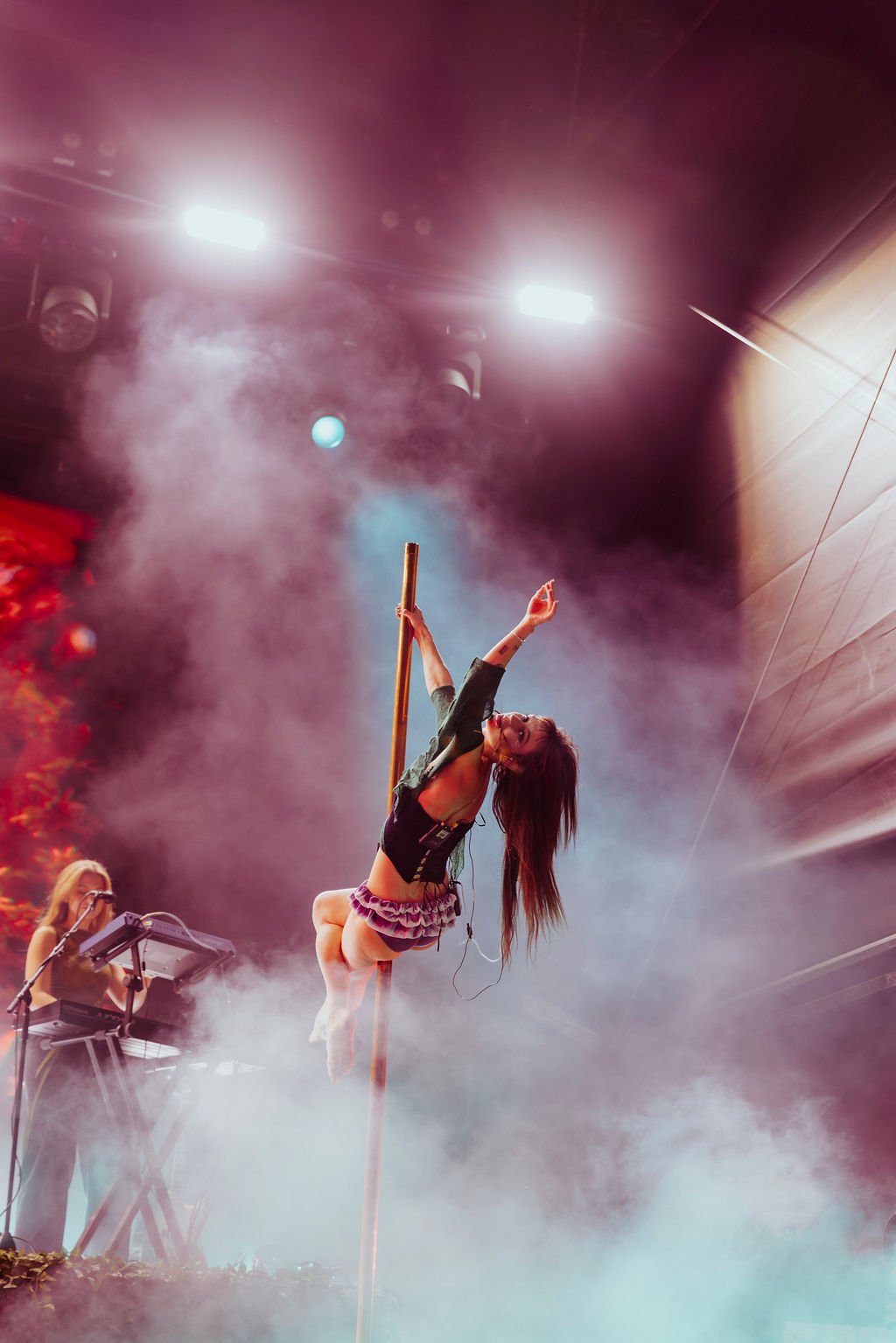 Transporting the audience from St. Kilda into the whimsical world of bush faeries, Peach wandered onto stage adorned with flower petals on her face and dressed in costuming inspired by the native Australian violet. She opened the show with the song, Piper, an unreleased song off of her upcoming album, Porcelain. She cast a hypnotic spell as she ascended the pole, delivering enchanting vocals, and mesmerising choreography.